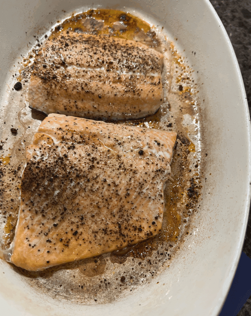 I have a multitude of great salmon recipes and I will add yet another to the rotation. I buy my salmon from Butcher Box and the portions are individually wrapped. They thaw quickly and I can have a great meal in a matter of minutes.