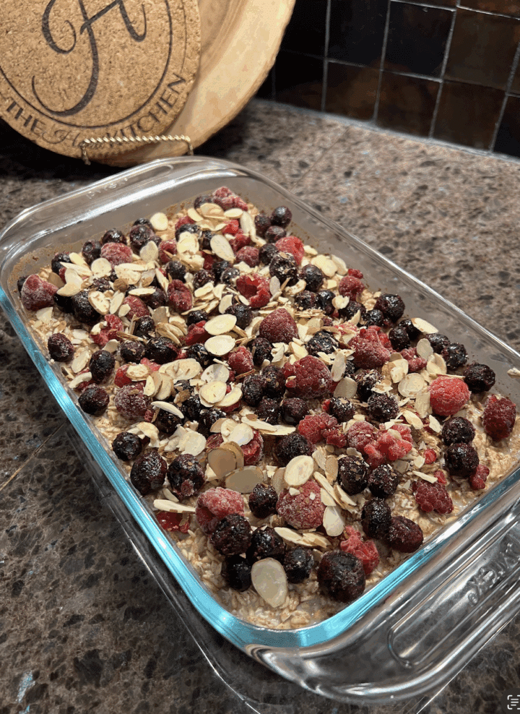 Oatmeal Breakfast Bake with Berries and Almonds. *New Recipe