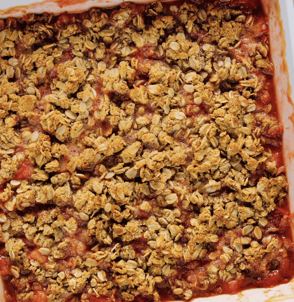 I seldom make a dessert but when I can get fresh rhubarb I will make an excuse. This crisp is thoroughly enjoyable.